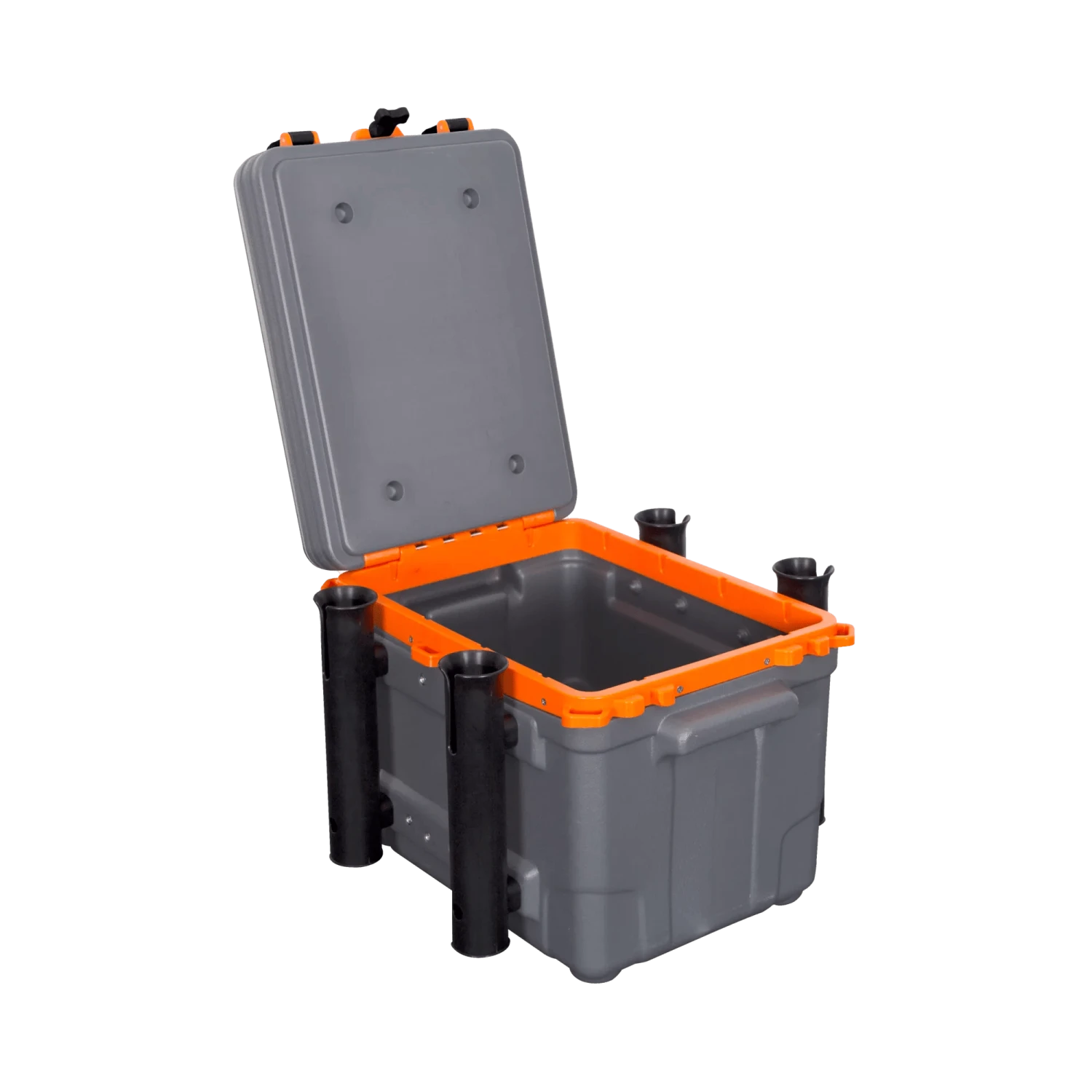 An open main compartment accommodates larger gear and tackle boxes, while smaller items can be stowed in the secondary lid storage. Functional and durable inside and out, the Kayak Krate is blow-molded, water resistant is easily lashed within a tankwell, and comes standard with four rod holders.